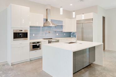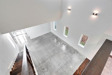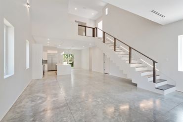 The industrial modern design of this residence has an incredible impact & is certainly one to be desired. The simplicity of the polished grey concrete flooring grounds the space while allowing the deep walnut wood tones and use of stainless steel to spark distinction.